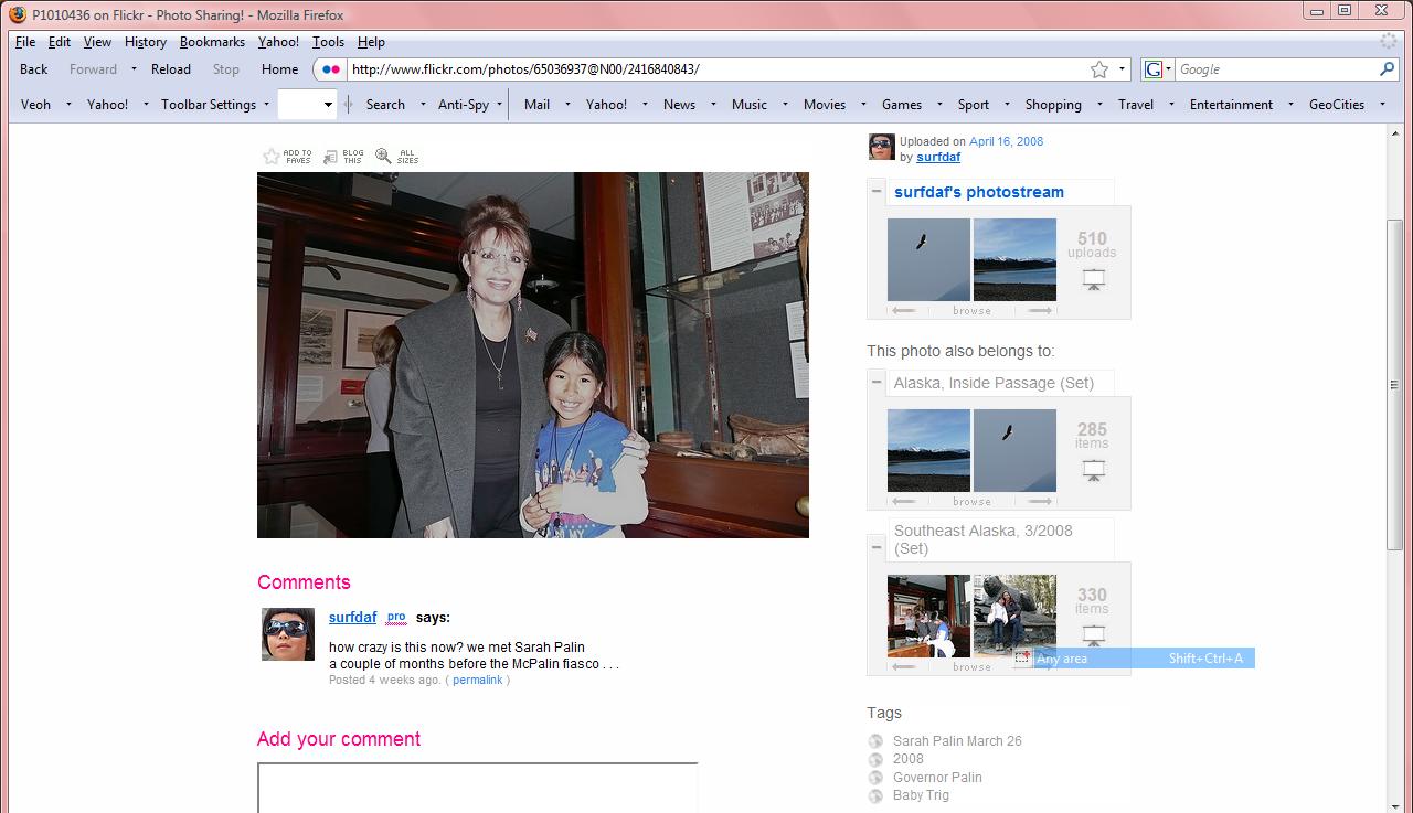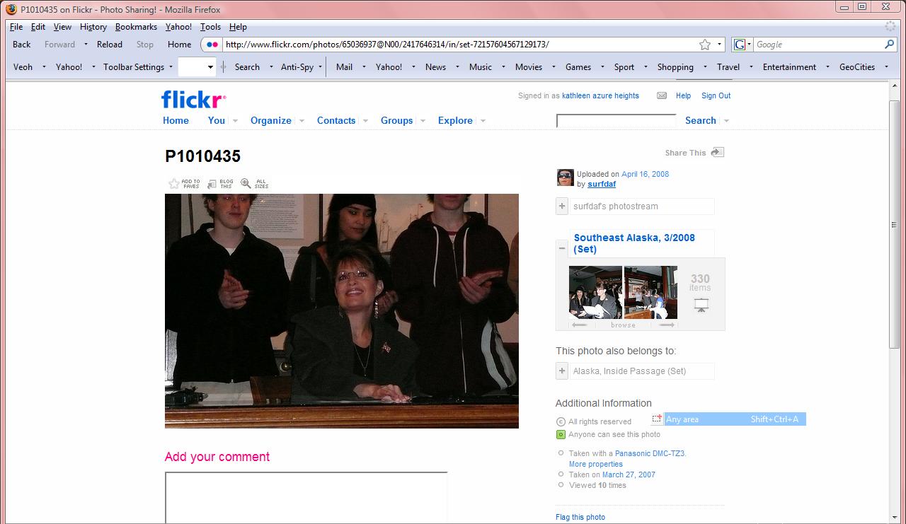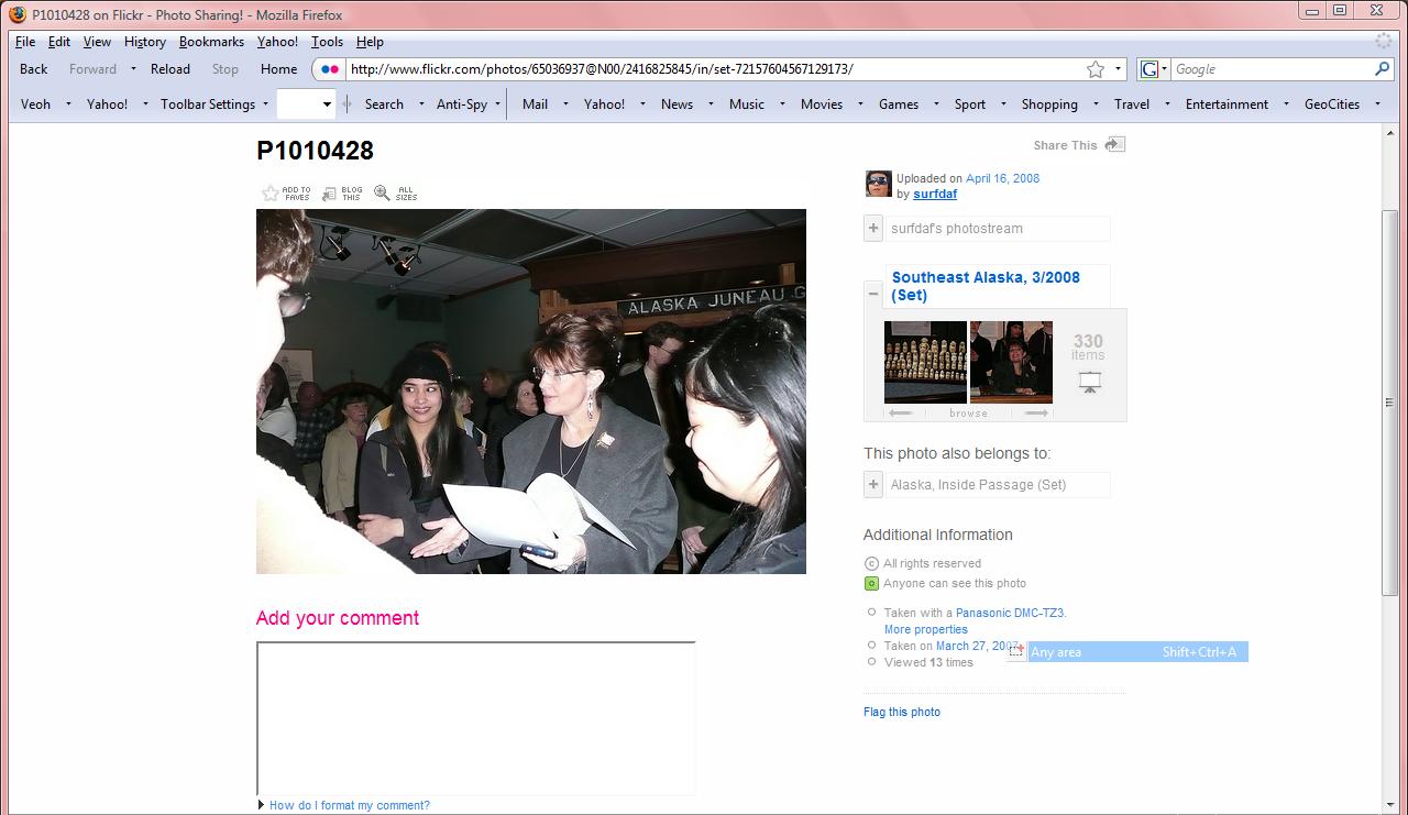 While "surfdaf" made the famous "nail in the coffin" picture private shortly after it was discovered, the other pictures are still online, "embedded" in a huge batch of other pictures from Alaska which were also uploaded to flickr on April 15, 2008!